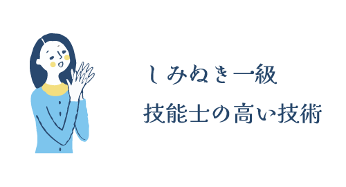 ※ 「しみぬき一級技能士」の正式名称は、厚生労働大臣検定の染色補正一級技能士です。